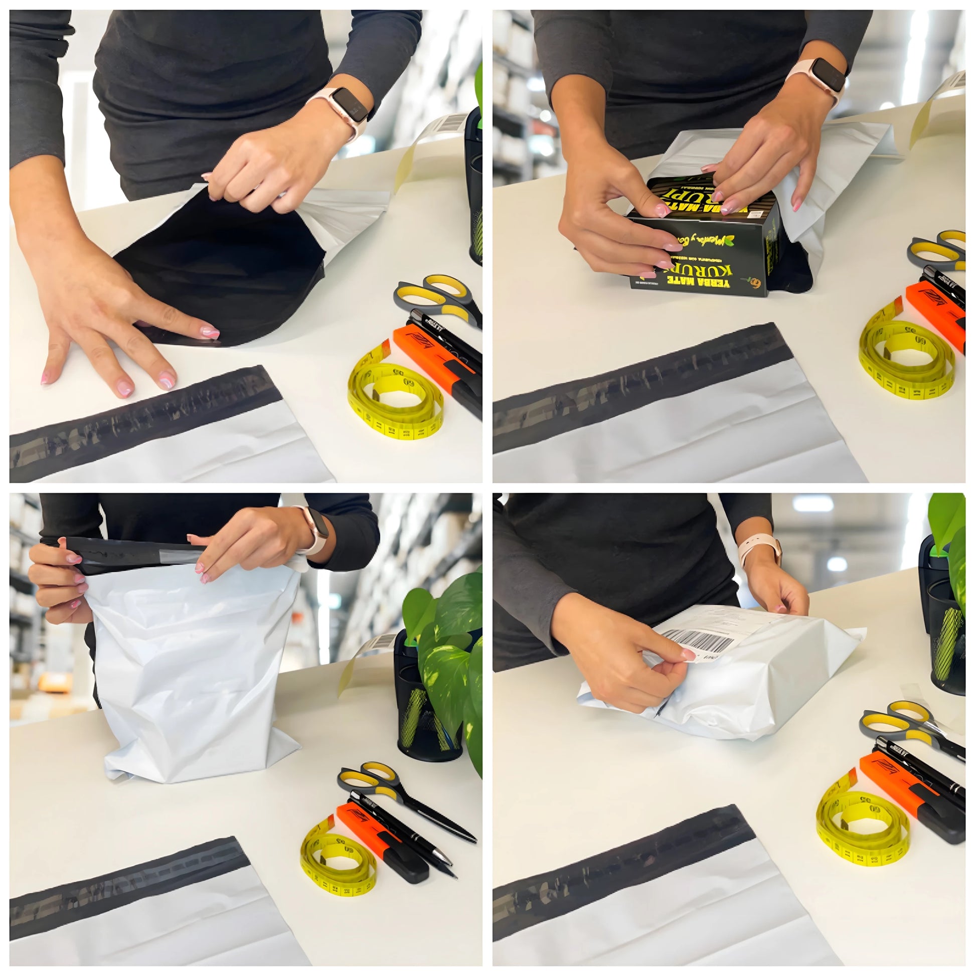 Tugevad ja kerged polüpostitusümbrikud saadetiste ohutuks pakkimiseks. Iseliimuv kinnituslint võimaldab kiiret sulgemist, läbipaistmatu valge kile varjab sisu ning niiskus-, pritsme- ja rebimiskindlus tagab vastupidavuse sorteerimisel ja transpordil. Sobib e-kauplejatele, pakiautomaatidesse ja kullerisaadetisteks.