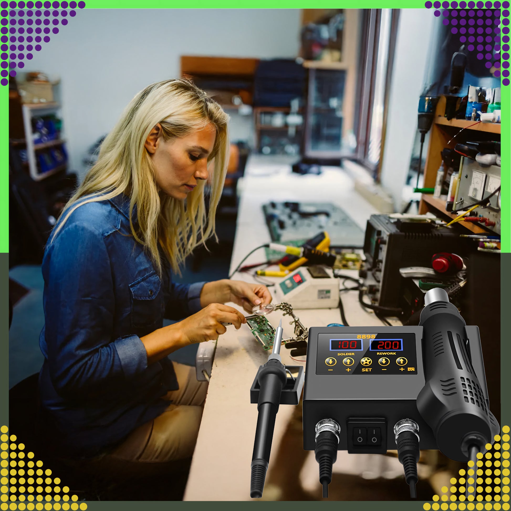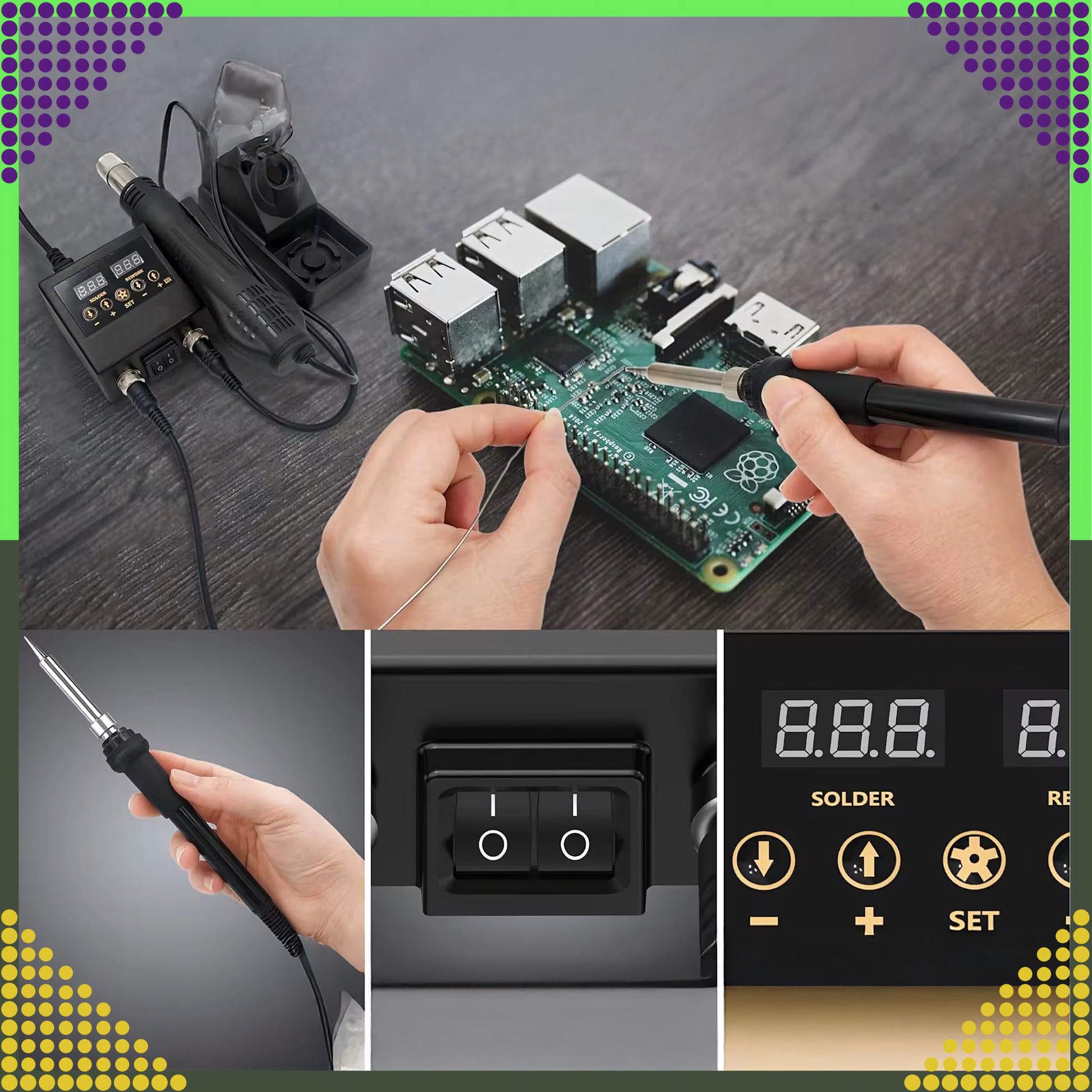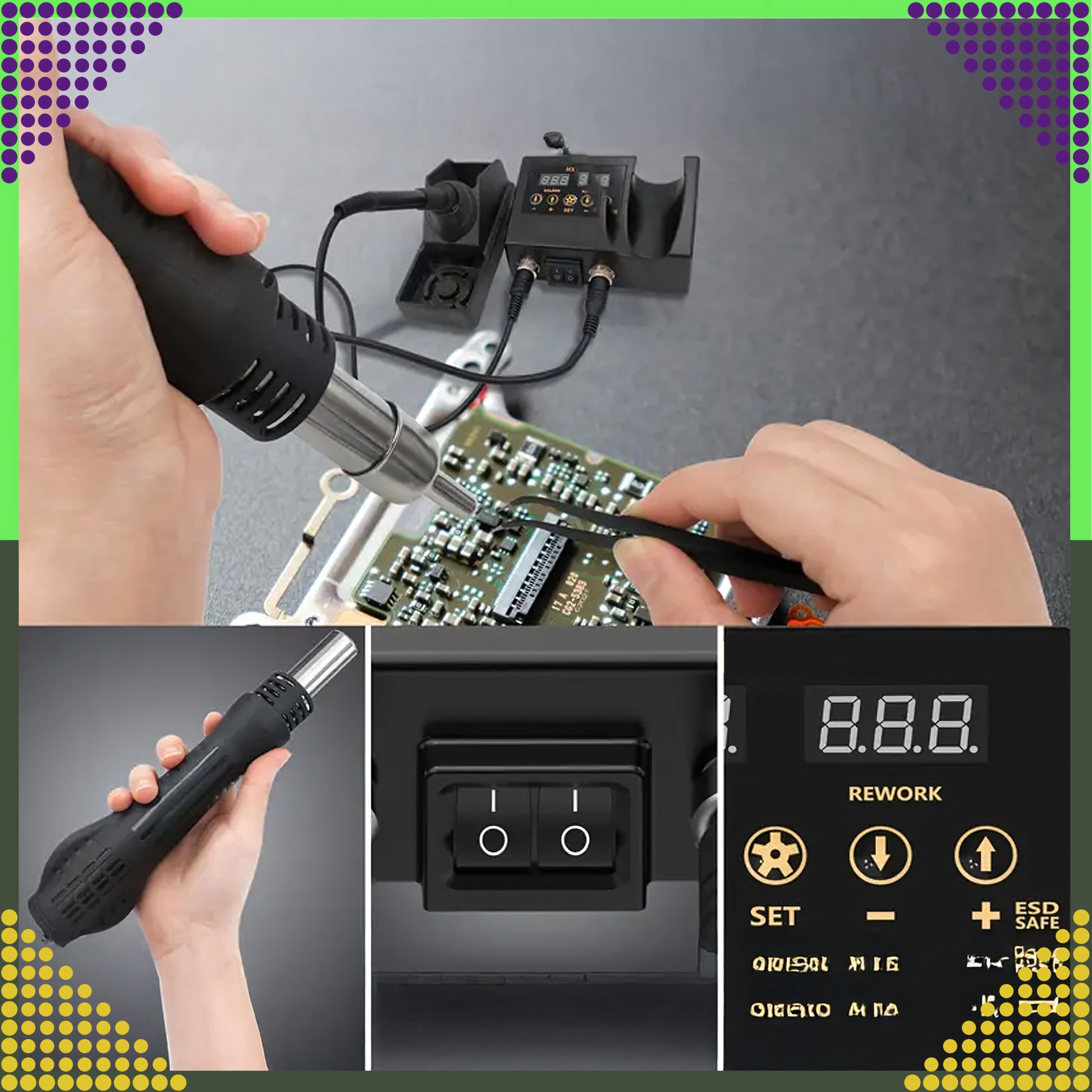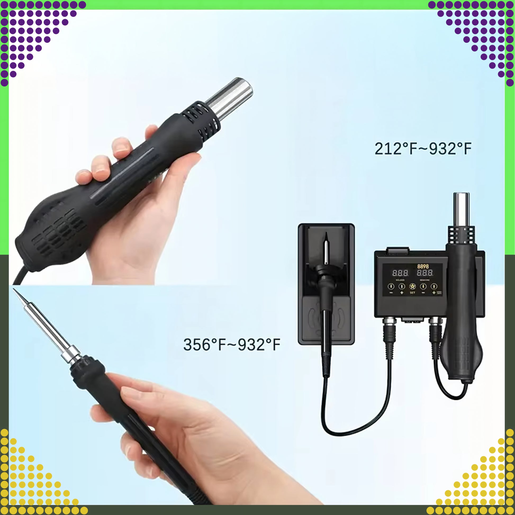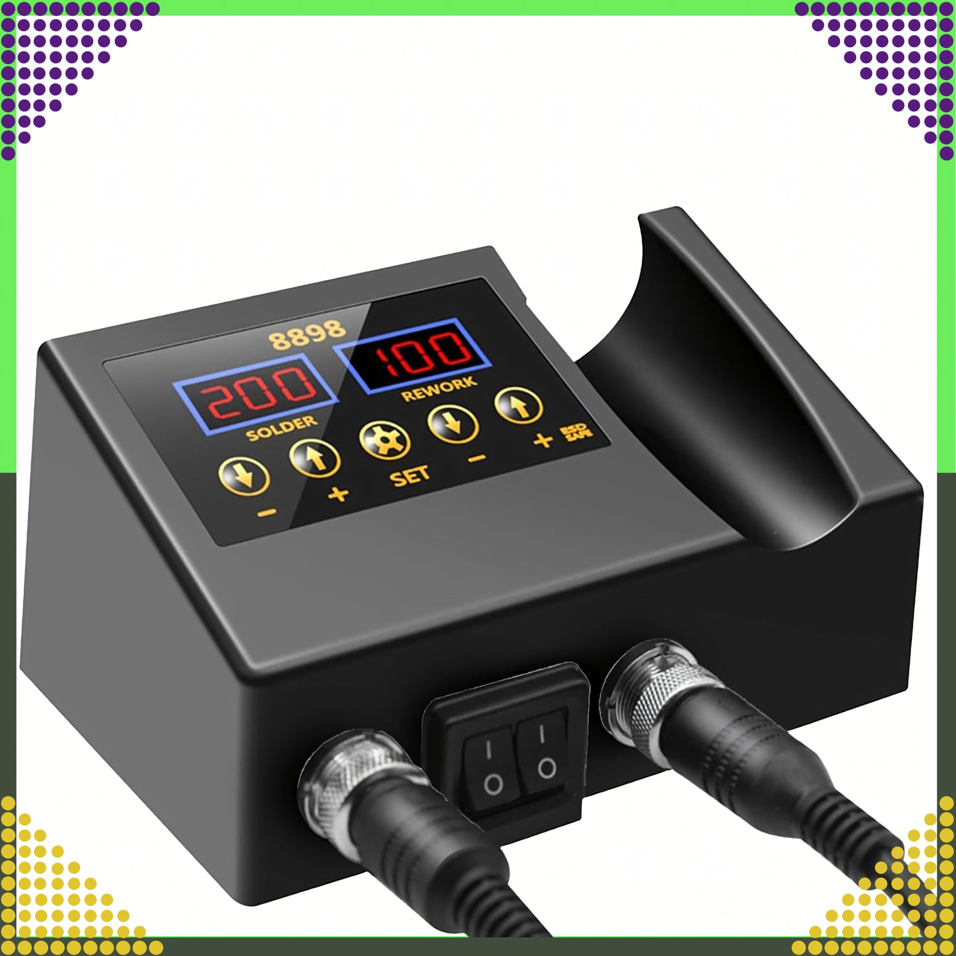 Kompaktne 2-in-1 jootmisjaam ühendab kuumõhupüstoli ja 60 W jootekolbi – ideaalne SMD-komponentide eemaldamiseks/paigaldamiseks ning läbiviikdetailide jootmiseks. PID-temperatuuristabiliseerimine ja LED-ekraanid tagavad kiire soojenemise, täpse temperatuuri hoidmise ja mugava juhtimise.