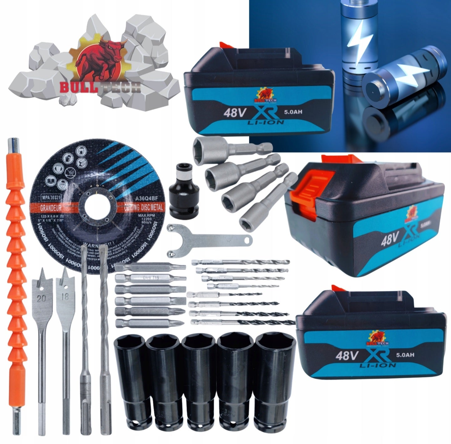 BULL-TECH BT5018XL 48V* 4-in-1 akukomplekt: kruvikeeraja, lööktrell, nühklihvija, mutrikeeraja