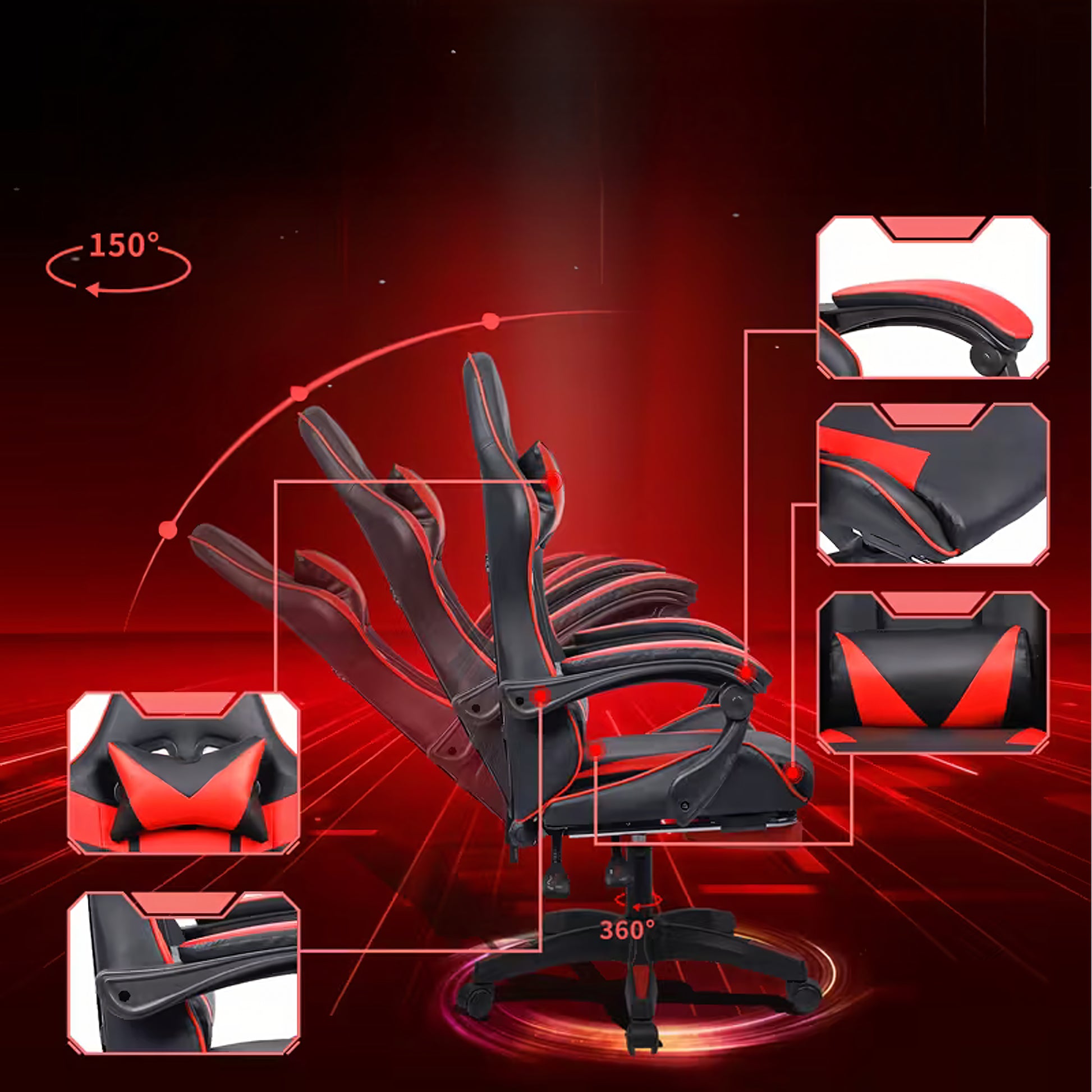 Ergonoomiline pöördtool sportliku “bucket”-stiilis istmega tagab mugava asendi nii mängimiseks kui ka kaugtööks. Väljatõmmatav jalatugi sobib lõõgastumiseks, kõrge seljatugi ja kaks reguleeritavat patja (peapadi ja nimmetugi) hoiavad selja tervislikus asendis. Vastupidav viisnurkne alus ja gaasiamort tagavad stabiilsuse kuni 150 kg koormusel.